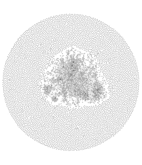 Step 2 went through all of the posts looking for markdown-style links. It built a library of front-matter, mapping the original URL to the archive markdown filename. It then whittled the links down to those that just referenced other posts (as opposed to “external” links) and converted the links within those posts to Obsidian style links. This allowed me to see the connections between all 7,000 of my posts. The results are interesting.