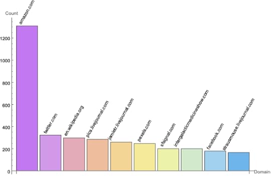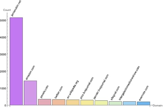 Out of curiosity, I took a look at those 15,000 total links across all 7,000 posts. I was curious about the most-frequent domains I linked to. Here is a chart showing the top 10 domain I’ve linked to over the years by the number of links:
