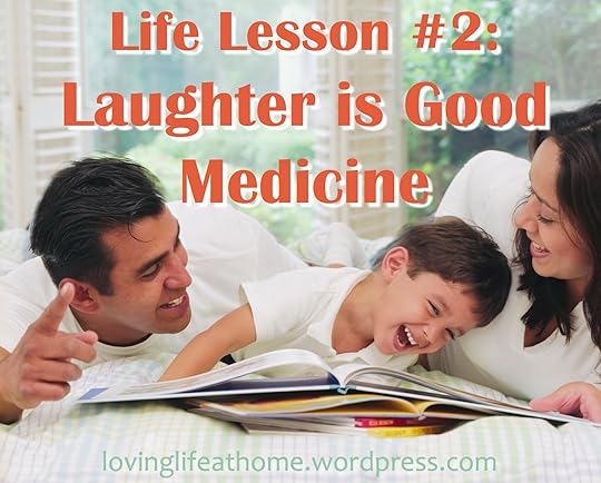 I’m convinced that all the laughing my husband and I have done over the past 25 years has not only helped our bodies stay healthy, but has kept our marriage healthy, as well. We laugh at silly songs and corny poems we’ve been making up since we first met. We laugh at funny movies, like Princess Bride and Dan in Real Life. We laugh about our children’s antics, like the toddler who decided just before party guests arrived to completely re-paper our bathroom in maxi-pads. We laugh over embarrassing mistakes, like the time my husband used his cell phone to video our baby toddling around the bathroom, then showed it to a couple dozen coworkers before realizing he’d inadvertently captured me in the background, sitting on the toilet with my pants around my knees. (At least he hadn’t posted it on YouTube!)