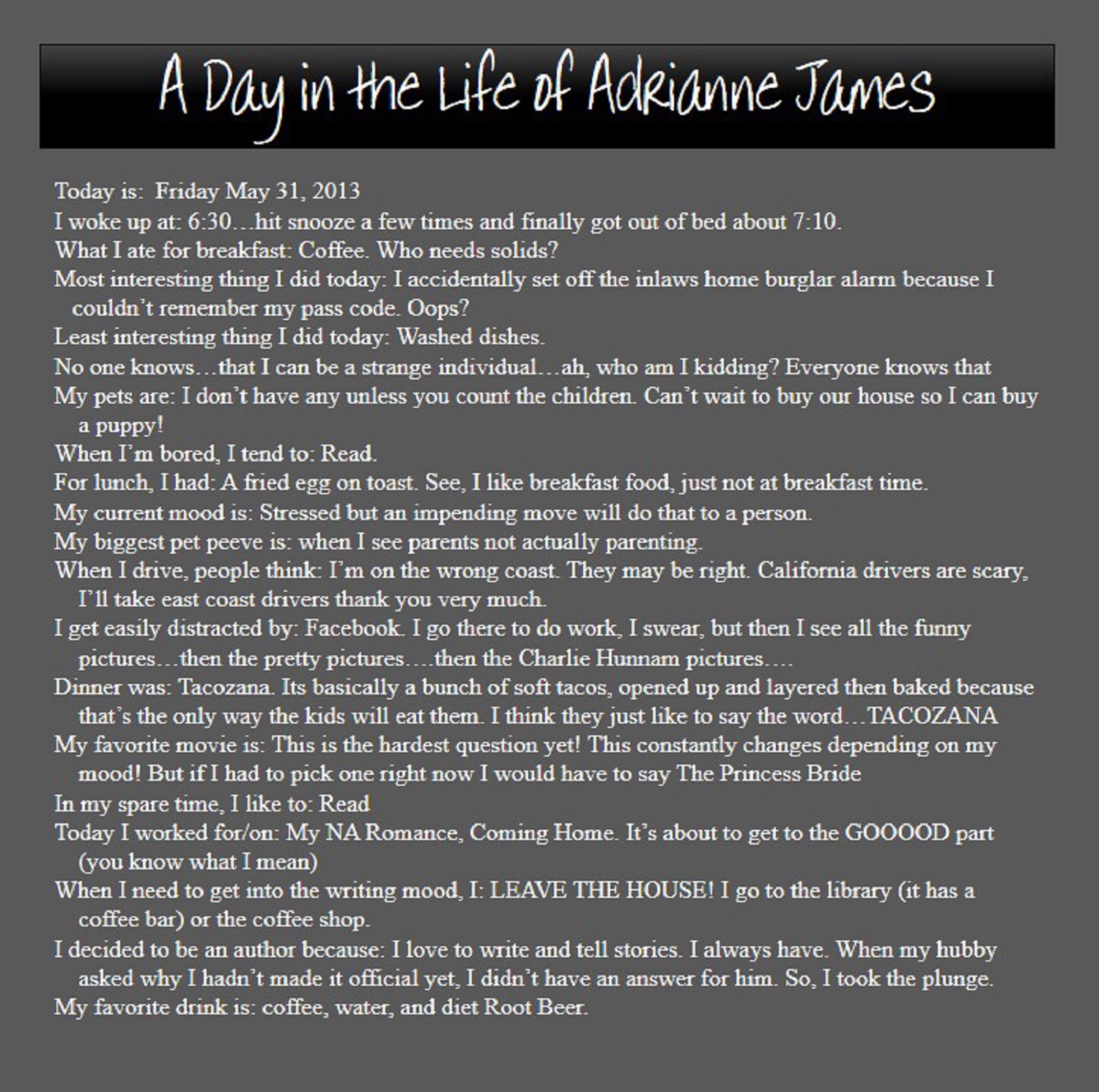 A Day In The Life Of Adrianne James