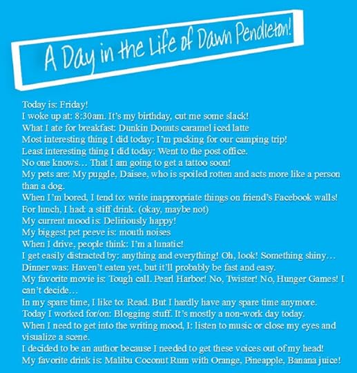Dawn Pendleton is a new adult author currently residing in New England with her husband and their pup, though she has immediate plans to move to Georgia and promptly become a Southern Belle. When she isn't staring at a blank page, willing the words to jump from her head to the screen, she's usually playing on her iPhone, reading a book, or taking pictures with her fancy camera (which she has no idea how to use). Her newest release, the first novella in the Best Friends Forever Series, was an idea that occurred to her back in February, when she first started writing. She wasn't at a place where she could write them, though, so she started her Broken Series, instead. Through this past Summer, the BFF series emerged in her head, taking more space until she finally had to let them out. Liar, Liar, the first episode in the series, released this past Tuesday and is free on all retailers except Amazon.