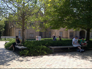 Warga University of Melbourne di South Lawn, di bawah bayangan Old Arts Building.Kopi dari kafe di sisi kedai buku universiti itu biasa-biasa sahaja rasanya. Namun, bukan rasa yang saya cari daripada kopi secawan itu. Ketika saya duduk di South Lawn dua hari sebelumnya, hari masih terlalu pagi. Rumput masih berembun dan kampus masih hening. University of Melbourne belum hidup ketika itu. Namun semasa kunjungan kedua ini, dapatlah saya menikmati suasana sebuah pusat pengajian tinggi, meski pada semester pendek musim panas cuma.