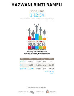 Last year, I clocked 1:18:30 net time, and this year, alhamdulillah, I did as in the picture below. I felt a bit "heavy" and tred but decided to just suck it in and hold the pace. Besides, this was the pace that I need to run in my second FM this year (it has a cut off time of 5 hours).
