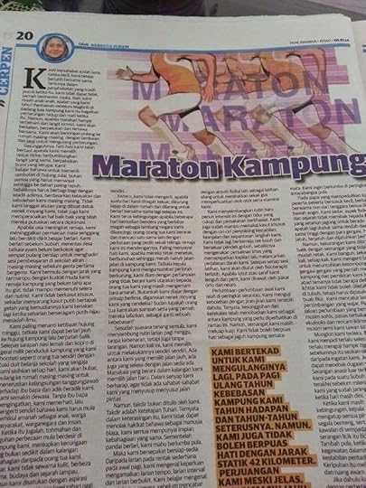 Selain mood itu yang menghidupkan tekad untuk menyiapkan cerpen ini, saya harus berterima kasih kepada rakan-rakan sepasukan KL Rat Race di tempat kerja. Saya telah terpilih untuk mewakili organisasi tempat bertugas ke acara larian kebajikan khusus untuk syarikat-syarikat korporat di Malaysia pada 23 September yang lalu. Kami sempat bertemu untuk latihan sekali, dan ketika itu saya benar-benar dicabar dan didorong agar berlari laju. Sebagai seorang yang tidak gemar dan tidak pernah berlari berteman, saya harus akui, pengalaman itu sangat membuka mata, seterusnya ditumpahkan ke dalam "Maraton Kampung."
