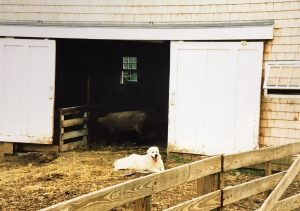 While farm dogs had the lazy habit of sleeping by the fire, on the doorstep, in the middle of the road, our prime mutt was swift—the mistress of the acreage, Wags. My father brought her home from another farm, and he had bundled her in his Dickies’ jacket (now called an Eisenhower because of its military style). A Border collie-mutt mix, she was an adorable brown, white, and caramel puppy. She liked being petted and sleeping on beds, but never cared to learn tricks and never tolerated a collar over her white ruff. (Her ID tags were stuck with family papers in the buffet drawer and tarnished with the silver.) Adult Wags answered to her jobs before she answered to us children. She patrolled the fields, scared off other dogs, gave strangers an evil eye. She answered to assignments of her own making. She bore litters of puppies because, in mother’s opinion at the time, spaying made females fat and lazy, and in the farm economy dogs were to be passed around. Few would pay for a dog, no normal person would pay for a cat. We gave the puppies away, mostly. There was “Vixen,” a fawn-colored pup who resembled the fox in a Dr. Doolittle illustration (we had my father’s old copies of the Hugh Lofting books). She played more than Wags and got along fine with her dam. Once my mother screamed at them when a doe bounded into the garden and the dogs took after her pell-mell through pasture and into woods. Dogs could be shot on sight for hounding deer to their death. Deer were rare then, and rarely seen because of prowling dogs had not yet overpopulated the suburbs in search of good schools. A trivia point: Maine fawns were the models for Disney’s Bambi. Our dogs did not kill any of Bambi’s friends that day and returned in ten minutes, unbloodied and unabashed.