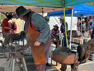 Hope to be back on a more regular basis. A couple of weeks ago, I visited the local Cowboy festival. It was nice to get out again. The day was a bit sunny and a tad hot and I didn't really go prepared, but just getting out raised my vibes. The actual festival was compacted into a couple of blocks and it was a tad crowded, but I was happy. They had a Dutch oven peach cobbler booth, but the line was a forever line. I loved watching the blacksmith and the cowboy twirl his ropes.