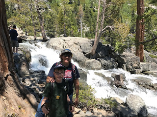 Here is a waterfall. We were at elevation, between 6500 - 7000 feet. Several of the surrounding mountains still had snow on them and it was still melting. The waterfalls in "emerald bay" were very active.