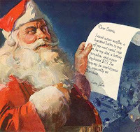 Dear Santa, I need a new muffler, a hundred bucks to pay off my root canal, cigars for my dad, a lottery scratcher, and a new boyfriend. P.S. I'm praying for world peace too, especially on Christmas. Love, Jules.