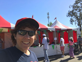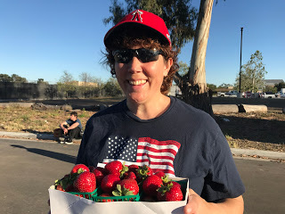 Here is me with my gratitious basket of strawberries. We can't eat them fast enough when we get come. I'm wearing the Angels hat because it's red and I wanted something red for the festival.