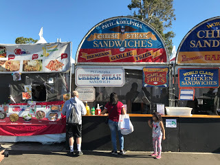 Here are some typical food booths. Of course, I'm a sucker for the garlic fries, but we got calamari and I spilt a Philly cheesesteak with Andrew. Joe is picky so I'm sure we got him chicken nuggets. They also sell Strawberry nachos, Strawberry beer, and Straweberry tacos.