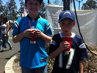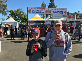 The boys drinking their strawberry smoothies, 2017. Smoothies are the best part of the Strawberry Festival.