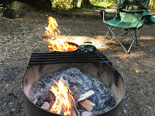 What's camp without a campfire, right? Here's a picture of our campfire. Behind it is our charcoal grill. They got a lot of use!