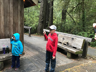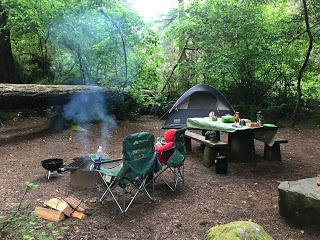 Here's a picture of our little campsite. Our tent is in the background. A huge redwood log that fell down is on the left. What I really liked about this campground is that you were surrounded by redwoods. It gave you a sense of privacy that we didn't have in other camps. The bathrooms were flush tiolets and they had coin showers. The part itself was well kept up.