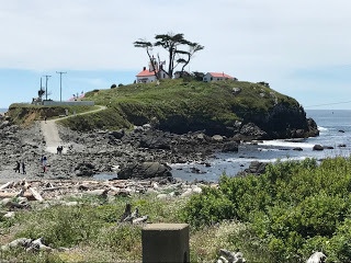 Here's a picture of the lighthouse in Crescent City. It's called Battery Point. You can only access it during low tide. When high tide comes in, it fills up the middle and cuts off the island from the main land.