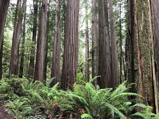 Today I thought I'd share some pictures with you from my vacation at Jedidiah Smith State Park. This state park is home to Redwoods trees. It's about 3 miles outside of Crescent City, CA. Crescent City is on the border between CA and Oregon. It's also on the coast of California. The climate is moderate, not to hot, not too cool. The majority of days start off with a marine layer that burns off as day go. The climate is perfect for the growth of Redwood Forests.