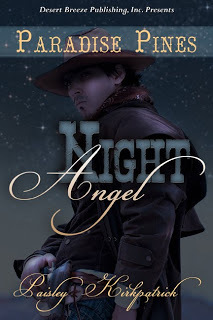 STEPH: What's the plot for Night Angel?PAISLEY: Sassy Amalie Renard, a poker-playing saloon singer, shakes up Paradise Pines, a former gold-rush mountain community by turning the saloon’s bar into her stage. Her amazing voice stirs the passions of the hotel owner, a man who anonymously travels tunnels at night providing help to the downtrodden as the mysterious Night Angel. Declan Grainger agrees to subsidize the building of a music hall to fulfill Amalie's dream, but a bounty for her arrest could spoil his plans. Distrust and jealousy stir flames of malice and revenge threatening to destroy their town. Drawing from past experiences, Declan and Amalie turn to each other to find a way to save the community.