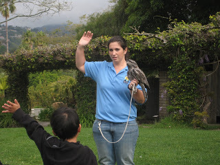 We also visited with Stanley, the bird. I can't remember what type of bird he was, but he wasn't an owl. Stanley was very friendly, but he trainer said he was a little lazy. It was a amazing just how well he blended in with a tree.