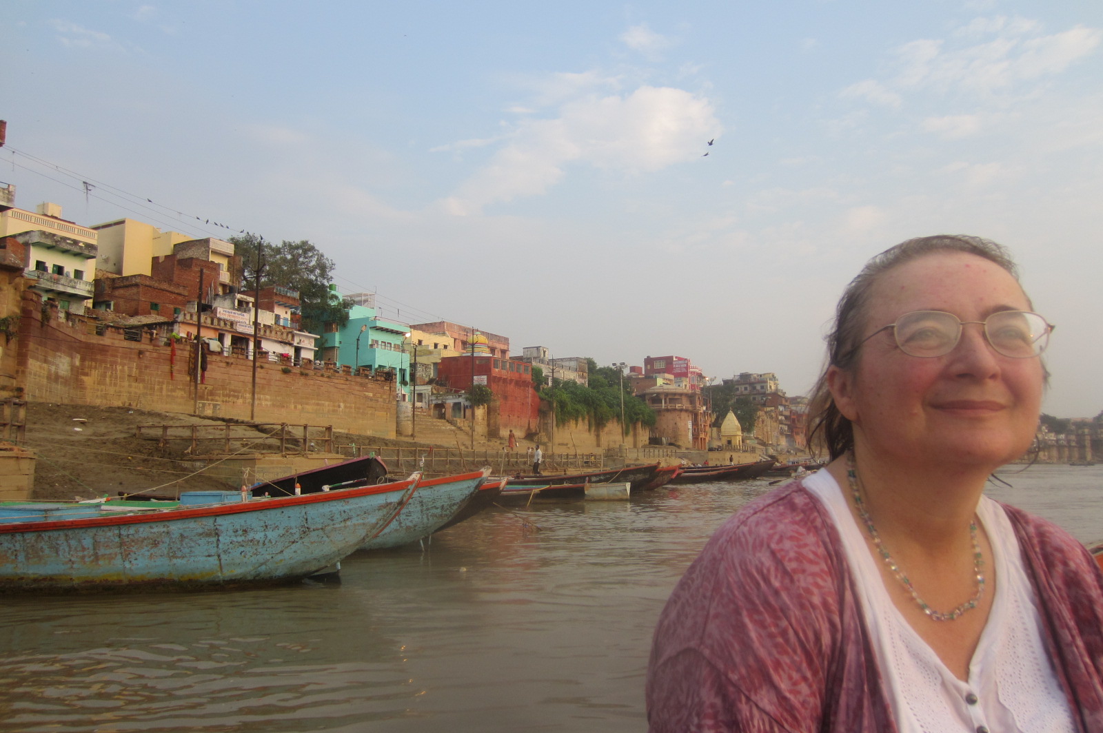 It's dawn, and Marilyn and I watch a golden streak of sunlight paint the dark waters of the river as we listen to the happy chatter of bathers near the ghat steps. Maa Ganga envelops us inher peaceful embrace. India may be crowded, noisy and hectic, but carved into the chaos, like a Buddhist cave hollowed out in a rock, moments of boundless serenity await. I know Marilyn will stay in Veranasi for at least a year –far longer than the three days I will be here – and that I too will be back.