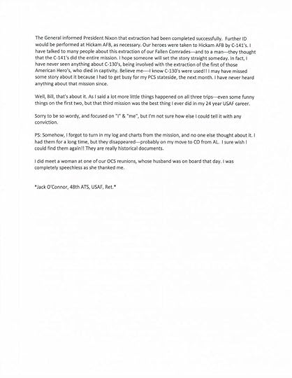 In closing, and on behalf of the cabin crews who brought you home, we thank you for your bravery, dignity, and service. We will always remember your faces and the many conversations some of us had with you on those long trips over the Pacific. In our minds, you remain young men who served your country and graced our lives for a moment in time, many years ago, during a difficult period in our shared history.