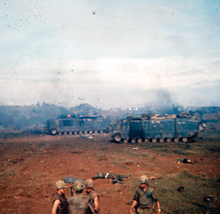 The Lieutenant stepped back, and the Captain took the podium. “I don’t want to burn a lot of daylight. You will learn more as I learn more. In short, the division is forming a new regiment. Your new designation will be the First Amtrac Battalion. Some of you might have noticed the Navy ship off our shore. You will be loading and offloading on that ship starting tomorrow. In two weeks, we will load all equipment, beans, ammo, and personnel, and join a convoy. Your next stop: Vietnam.
