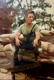 We landed in Vietnam on December 6. We were assigned to a camp in the very early stages of construction. We were kept busy digging bunkers, foxholes, and stretching barbed wire. Lonny’s head healed, and his headaches passed into a bad memory. So he was in the bunker getting dirty with the rest of us. We worked during the day, had C rations for dinner, and after a brief respite, we occupied a foxhole and stared into the blackness of night. We would be four hours on, then Lonny would take over till dawn. Lonny was a constant source of entertainment. He usually finished digging his hole before us, and would sit on its edge, and smoke a cigarette, chattering like a bird in a cage. Occasionally, a sniper would shoot at us, and Lonny, true to his demeanor, would extend his middle finger above the foxhole, then yelled something dirty in response.