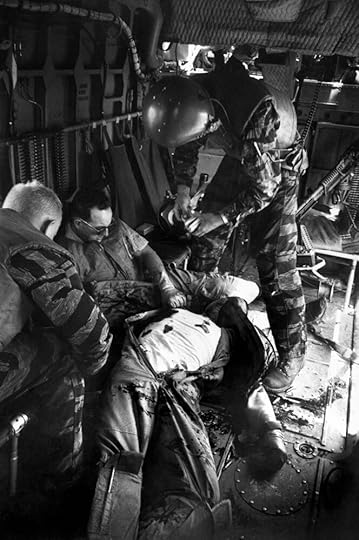 I still have a good right hand, I thought. All my wounds are on my left side. I began running, running, gasping for air. Then everything started to go black—even the bright lights on the bird and the tracers. Pilots never turn their lights on at night in combat, I thought, and that was the last thing I remember before I awoke with a cool wind blowing across me on the deck of the bird.