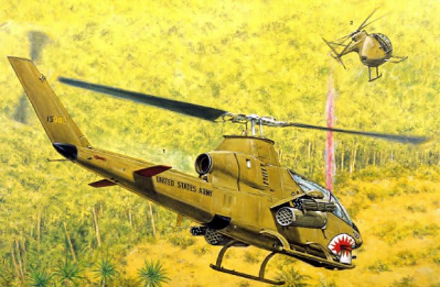 The door gunner on the exfiltration/extraction bird fired at the wood line with his 60, and his red tracers found their mark for suppressive fire in long bursts, raking everything, the bright red laser-like rounds pissing blood into the enemy positions. Other red tracer rounds started coming into the contact area from about 45 degrees above, apparently from a Cobra gunship and a light observation helicopter (pink team).