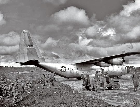 Did you know that the airport at Saigon is the busiest in the world, that it has more traffic than O’Hare field in Chicago and much more than Kennedy in New York—Well it’s true. We stood around—maybe ten thousand of us all looking like overdone biscuits until our plane was called. It was not a pretty ship this USAF C-130. Its rear end opens and it looks like an anopheles mosquito but into this huge anal orifice can be loaded anything smaller than a church and even that would go in if it had a folding steeple. For passengers, the C-130 lacks a hominess. Four rows of bucket seats extending lengthwise into infinity. You lean back against cargo slings and tangle your feet in a maze of cordage and cables.