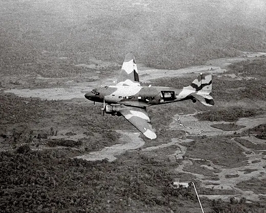 It was my last night and I had reserved it for a final mission. Do you remember or did I even mention Puff, the Magic Dragon? From the ground I had seen it in action in the night but I had never flown in it. It was not given its name by us but by the V.C. who have experienced it. Puff is a kind of crazy conception. It is a C-47—that old Douglas two-motor ship that has been the workhorse of the world since early on in World War II.