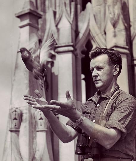 The Lab had a contracts with the Office of Naval Research, headed by Gaither Pratt, to see if homing pigeons were using ESP to find their way. This is a picture of Pratt and his pigeons.