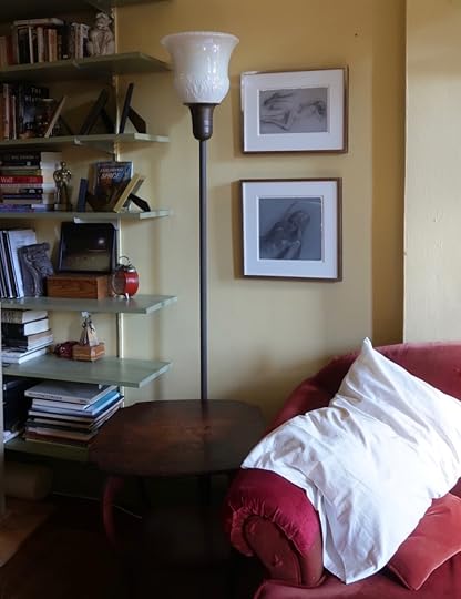 I bought a new lampshade for my floor lamp which arrived yesterday. One of my cats had knocked the lamp over a year or two ago and shattered the glass shade. New shades aren’t cheap so I’ve been putting off replacing it. I finally decided I could afford one and I picked a new shade, different from the previous shade because I never really liked the previous shade.