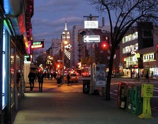 Two views walking up 6th Avenue last night, on my way to my monthly MBSR meditation meeting. They make it seem like in a few steps I went from dusk to evening, but it was only a different setting on my camera. I use a Canon G9, and the first shot was taken with their “night snapshot” setting, and the second was the “automatic” setting.