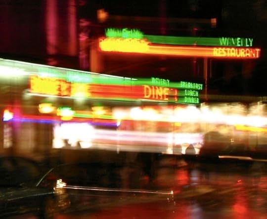 As per Lisa G.’s suggestion, I tried shooting using the “fireworks” setting on my G9, while moving the camera. Psychedelic diner!