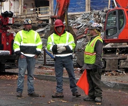Construction workers in front of the slowly disappearing St. Vincent’s hospital. Destruction must be the kinda fun part of construction work, I think.