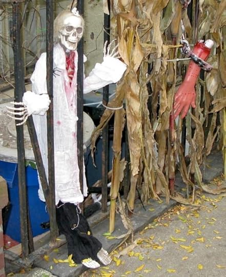 Another happy skeleton, hanging out by the trash in the cornfield on 11th Street. And a detached limb. And a spider. Damnit, what else did I miss??