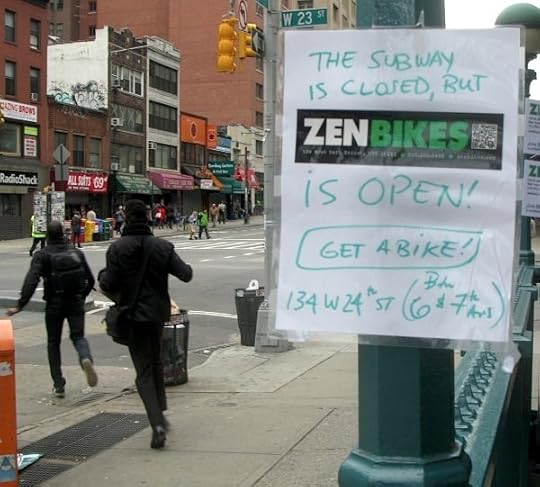 There are two Manhattans. Those of us downtown, without power, and those who live uptown, for whom it’s business as usual. It was like this after 9/11. Not that people uptown weren’t affected, of course they were, but I’ll never forget going uptown a couple of weeks after, and people really were walking around like nothing happened, it was like being in another world.