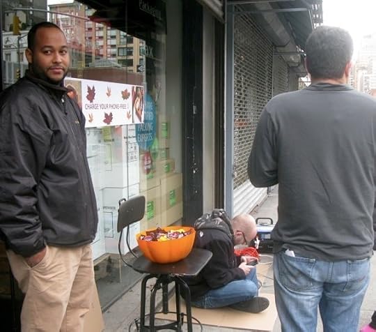 A number of very kind businesses (and Con Ed) set up generators on the street and let anyone who came by power up. But this shop, a UPS store on … 7th Avenue I believe, I should have noted it, they gave out power AND CANDY. So a big thank you to UPS! I’ll bet it was the idea of the guy looking at the camera. He has such a sweet face.