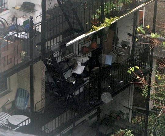 4:55pm: I’m glued to the tv, can’t stop watching, and it’s just the same shots and same information over and over. I did break away to go up to the roof, where I felt the strongest winds so far. And noticed that my neighbors haven’t cleared off their balconies. Future projectile alert: