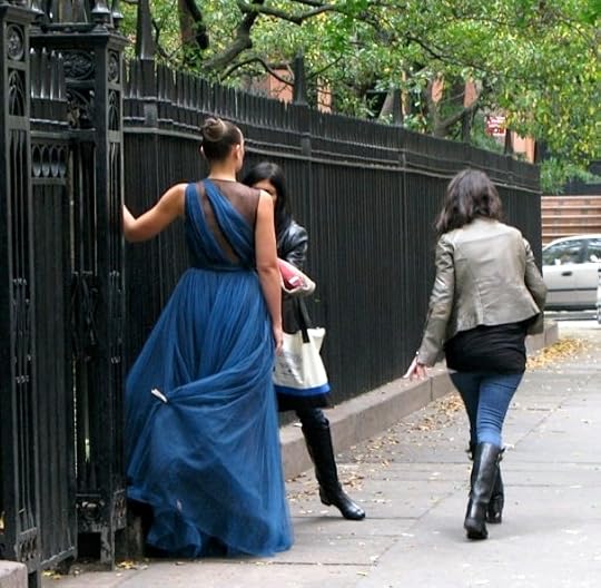Where did the last two days go? I actually started writing this post yesterday, when I got back from my dentist appointment. This is a behind-the-scenes view of a photo shoot outside Gramercy Park. I love that shade of blue. I was so influenced by it that when I went to buy an umbrella this morning they had one a shade close to it and I bought that one.