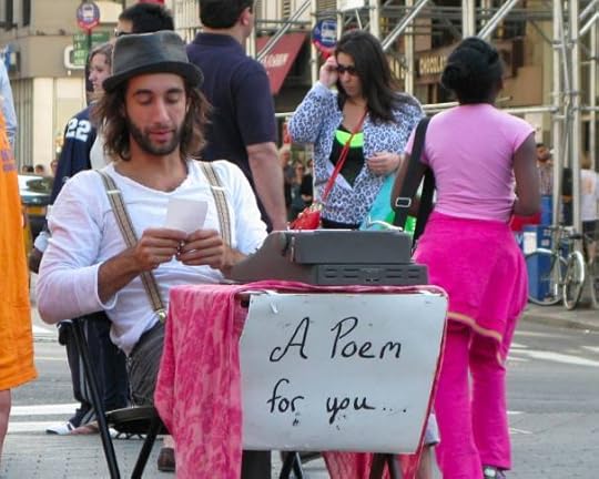 A poet in Union Square. Note the typewriter.