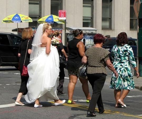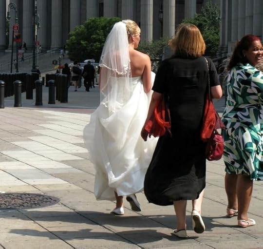 At one point during my cat search I was walking behind a bride on her way to City Hall to get married. Most people getting married at City Hill wear something nice, but they usually don’t go all out with gowns and tuxes. (My friends Howard and Sandy got married there in their regular, every day clothes.) I love the brides who say, “Fuck it. It’s my wedding day and I’m wearing a wedding gown.” I took a couple of shots.