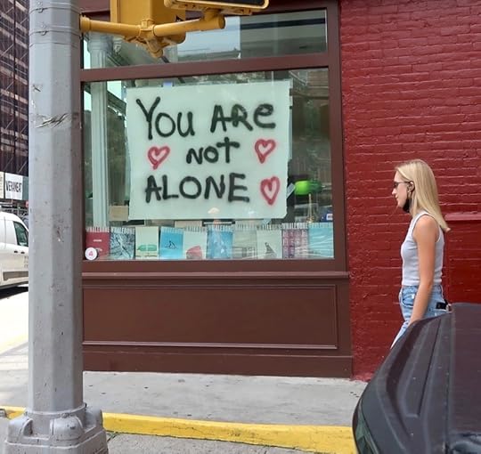 Speaking as someone who lives alone, the pandemic has, not surprisingly, really emphasized that we really are. I’m not saying we don’t have friends, family, boyfriends, girlfriends, people who love us, etc. But we are experiencing the pandemic differently than people who don’t live alone. There are pluses and minuses. All of that aside, I appreciate the kindness in this sign.