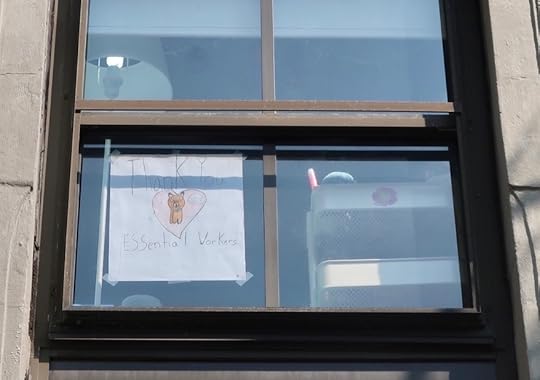 I like that the child who drew this drew a picture of their pet to thank the workers, and not themselves.