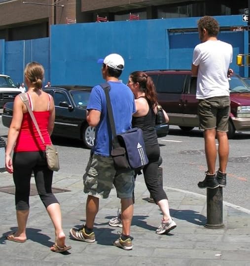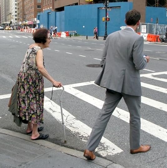I know this shot is not particularly earth shattering. I took it because it was two people as opposite as possible were about to engage in the same action, crossing the street.