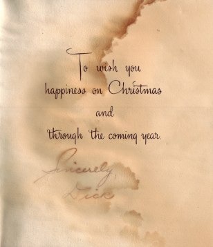 “To wish you happiness on Christmas and through the coming year.” Farrelly wrote “Sincerely, Dick” at the end.