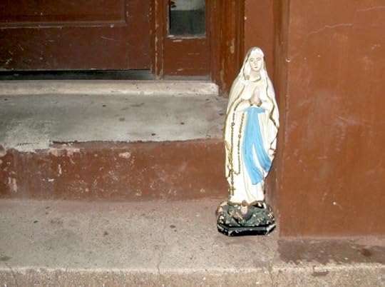 The statue of the Virgin Mary pictured below is a casualty from the Paring Down Process that is integral to my annual Spring Cleaning. Every year I have to get rid of a certain amount of stuff or my apartment starts to feel uncomfortably cluttered. We’ve been through a lot together though, Mary and me. Someone else had gotten rid of her roughly 36 years ago, when I found her and picked her up off the streets of Cambridge, MA, where I was going to school. Since then I’ve been carting her from place to place every time I’ve moved. She’s survived college, grad school, marriage, divorce, countless jobs, starting a business, five books, I could go on.