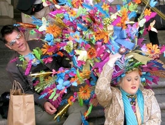 Update: Some friends of mine were surprised to learn that the Easter Parade was a real thing. But I wonder if it was always the campy, costume-y, Halloween-Parade-like thing it is now. I seem to remember that in the past, 5th Avenue was never closed for the parade, and people just strolled the sidewalks, and further up, along Central Park.