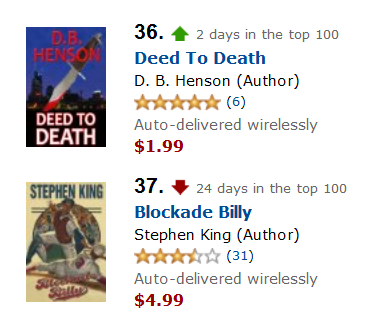 I'm amazed by the willingness of Kindle readers to purchase books by a new author. I don't know if it's due to the ability to sample a novel before buying, or if it's the low cost of e-books. Whatever the reason, the sales for Deed To Death have surpassed my expectations once again. Here's how I just ended my day: