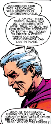 Take the X-Men. These stories explore themes of racial discrimination, and while there is a repeated moral (e.g., accept those different from you), there are also always difficult questions raised. The conflict between Professor X and Magneto is a prime example. Magneto believes that mutants are the next step in human evolution and should rule the world. Professor X, on the other hand, believes humans and mutants can co-exist as equals. The latter is obviously the stories' message, since Professor X is the "good guy," but he is frequently faced with challenges that throw that message into question. Can humans and mutants ever truly get along?