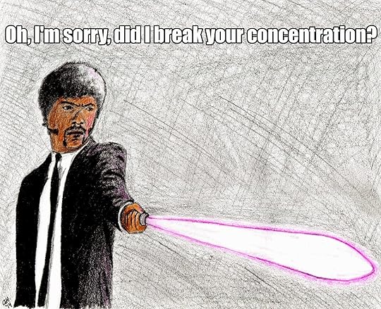 The blog says drawing in the subheader.The last drawing I posted was over a year ago.I actually like this sketch. I finished all my work, played games with the kids, and even wrote words today (read: I've earned a post).It's Jedi week at Anthdrawlogy.Samuel Leroy Jackson.